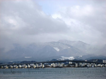 琵琶湖越しの雪の積もった比良山系が撮れたのは、とてもラッキーでした。