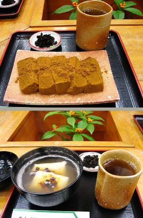 美味しそうなわらび餅とおぜんざいですね。私も大好きです。