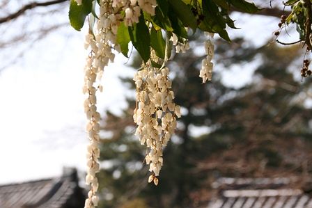 その馬酔木の中からひょこっとメジロが顔を出しました。
