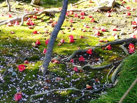 ピンクの花弁の絨毯(↑)も趣がありますね。