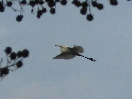 鷺池と言えばサギ。アオサギが空を飛んでいました。