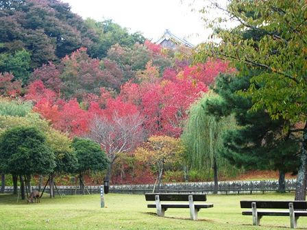 奈良公園は桜もそうですが、紅葉もいろんな種類の樹木があるので、かなり早くから遅くまで楽しめます。