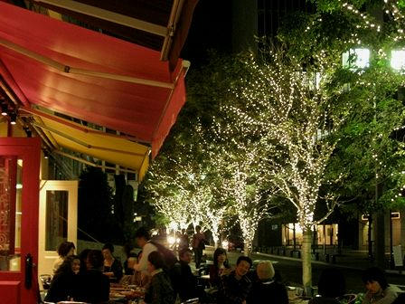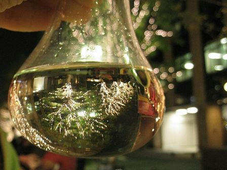 キラキラ輝く銀杏並木がきれいですね。それにジュースのシロップのびんに映ったイルミネーションの幻想的なこと・・・・