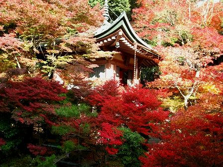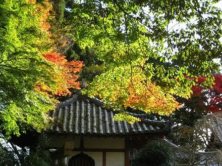 お堂と紅葉 真っ赤なのはドウダンツツジです。