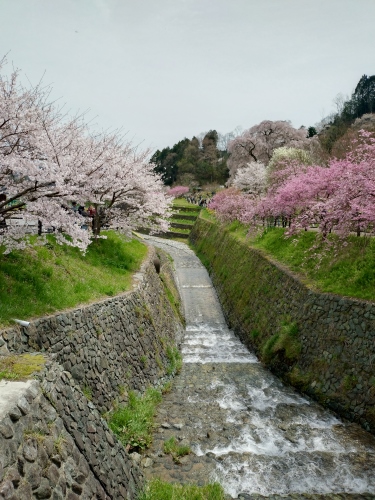 真ん中に川が流れていて、両端には、河津桜、ソメイヨシノ、