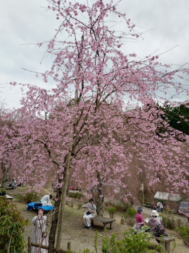 遠くからでもすぐに分かりますね。真ん中の大きなしだれ桜です。