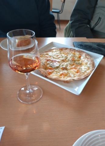 ここで、お昼を食べました。ピザもワインも美味しかったです。