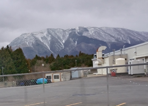 晴れてたのに急に雪が降り始めました。そして、車窓から、鈴鹿山脈が見えます。
